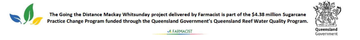 The Going the Distance Mackay Whitsunday project delivered by Farmacist is part of the $4.38 million Sugarcane Practice Change Program funded through the Queensland Government's Queensland Reef Water Quality Program.